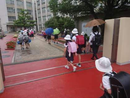 今日の登校のようすです。