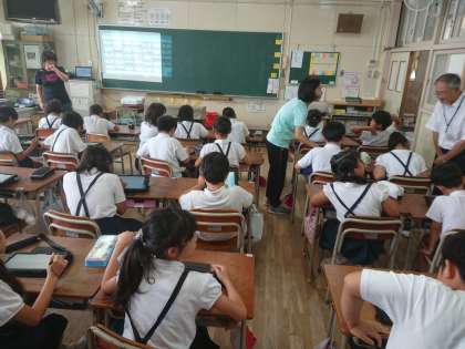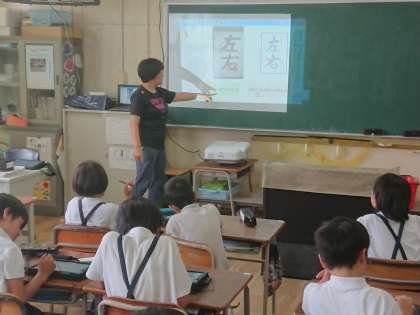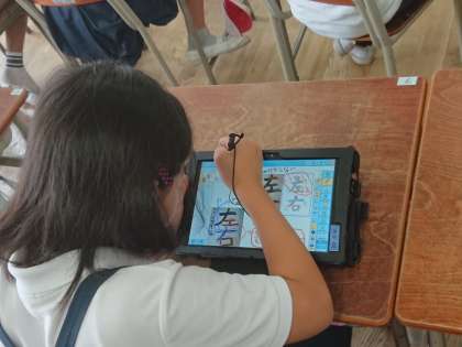 4年生の書写では、はじめとあとで書いた作品を比べ、どこが良かったかをタブレットを使ってまとめました。