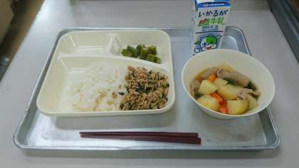 今日の給食に入っているオクラは、夏の緑黄色野菜でいろいろな栄養素を含んでいます。