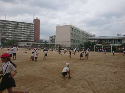 昼休みは元気に運動場で遊んでいます。