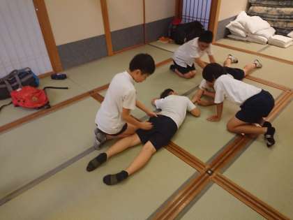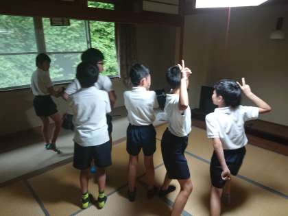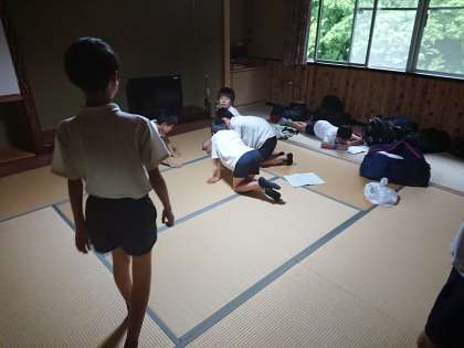荷物の片付けができた班は、部屋でくつろいでいます。
