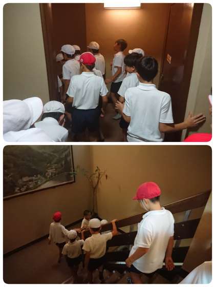 避難訓練は、室長を先頭に静かに素早く行うことができました。