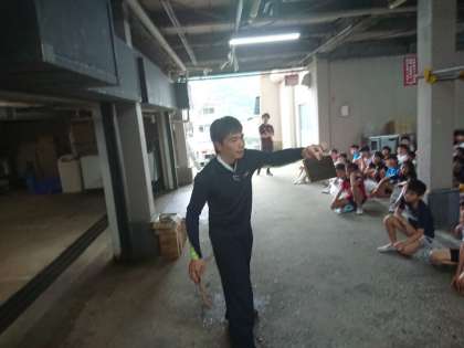 これから魚つかみ、焼き板みがき、まが玉づくりを始めます。