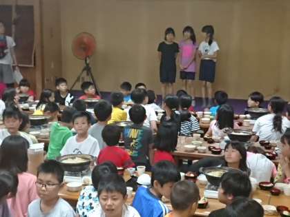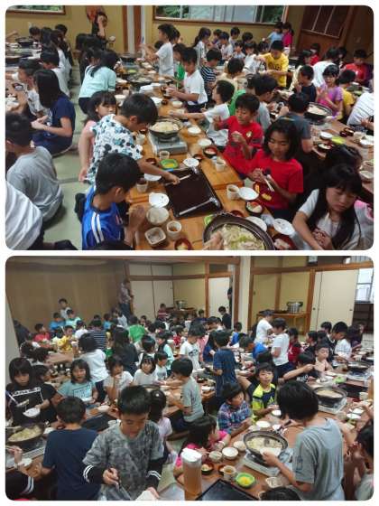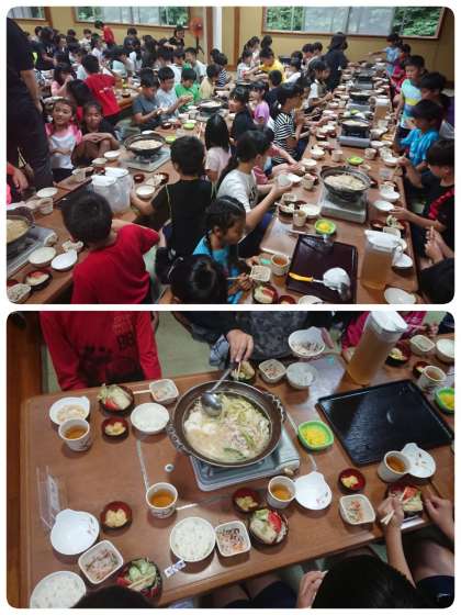 班のみんなと仲よく一緒に鍋をつつきます!!