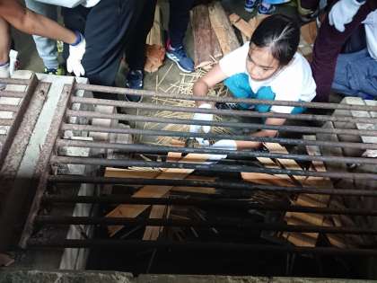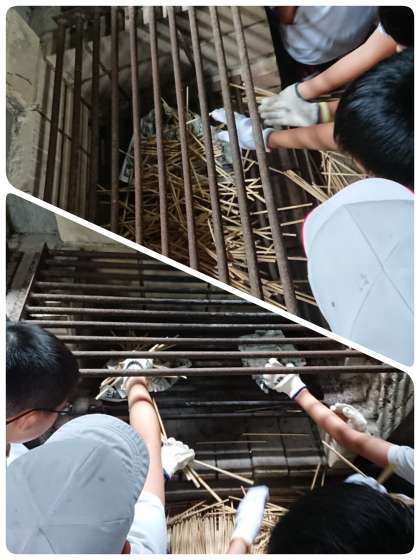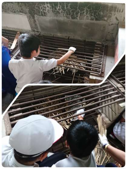 かまどでは、まきに火をつける準備をしています。