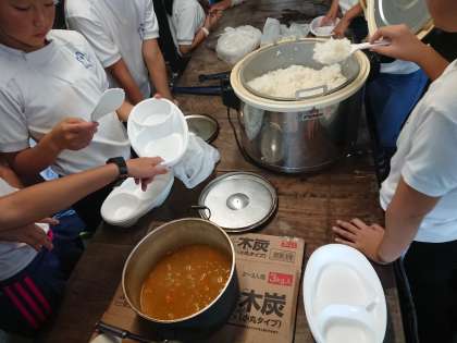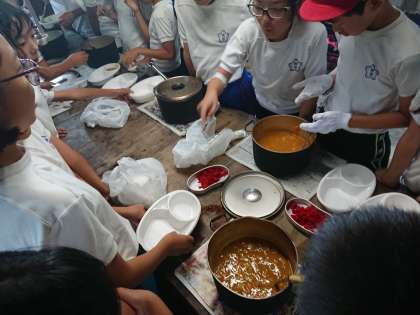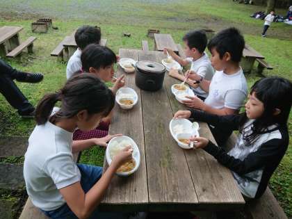 みんなで作ったカレーを大自然の中で食べると、とっても美味しいです。