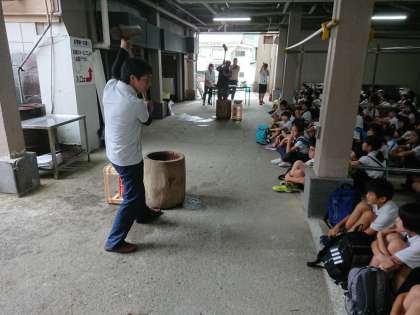 はじめにスタッフの方から美味しい餅の作り方のコツを教えていただきました。