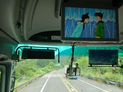 バスの中では、各クラス映画を観て楽しんでいます。