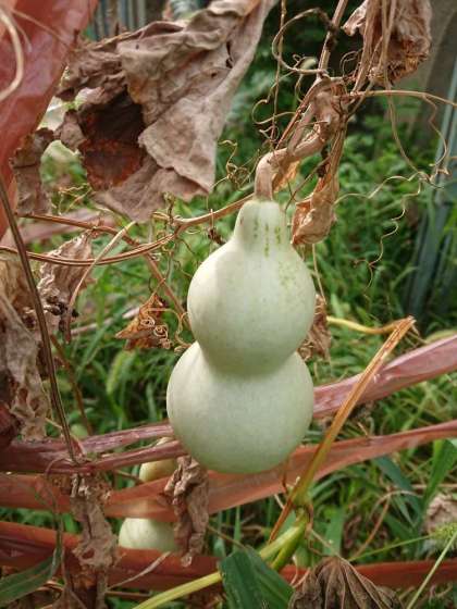 ヘチマやヒョウタンも大きく育っています。