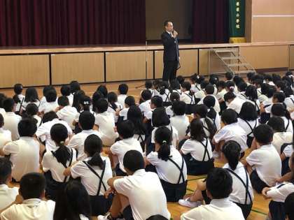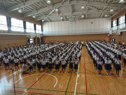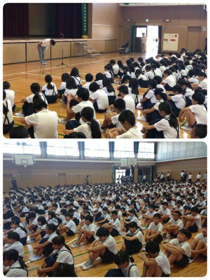 続いて、生活指導の先生からは、夏休み安全に生活ができたことと、9月の学校生活目標「ろうか・階段であそばないようにしよう」のお話がありました。