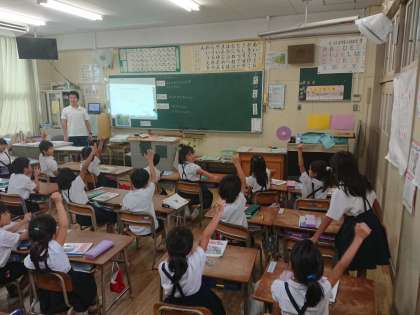 「ながさのくらべかたをかんがえよう」をめあてに、グループでながさのくらべかたを考えました。