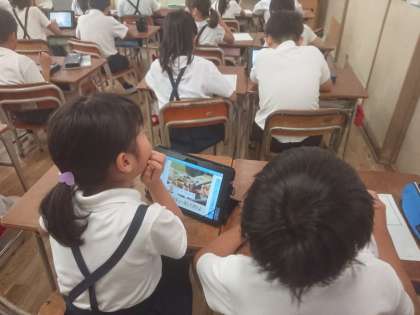 9/13の学習発表会では、1学期に行った社会見学の報告をタブレットを使って行います。