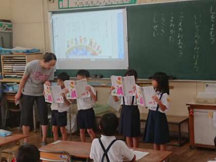 1年生の国語では、みんなの前で詩を読みました。