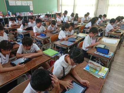 5年生の社会では、調べ学習のツールとして、タブレットを活用しています。