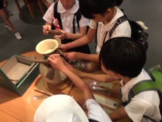 発掘した土器を組み立てる体験をしたり、大阪の歴史に触れたりと、学習しています。