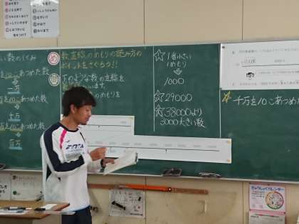 3年生の算数では、数直線を使って、大きい数のめもりを読みました。