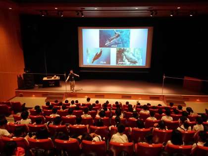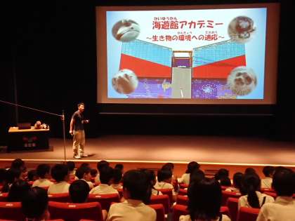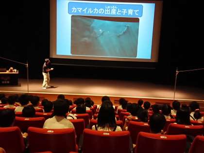 館内の見学の前に、飼育員の方から「生き物の環境への適応」について、映像を見ながら学習しました。