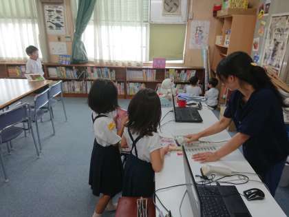 1年生の図書の授業のようすです。