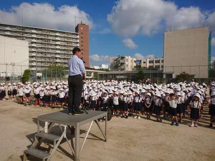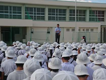 今日は、教頭先生から「災害に対しての心構え」についてのお話がありました。