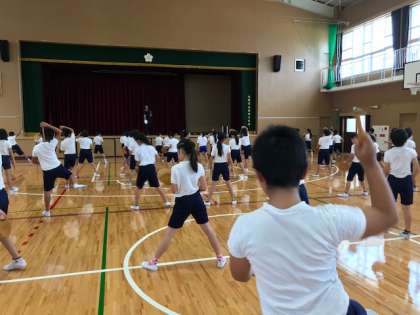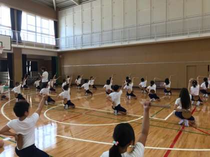 5年生の体育の授業では、運動会の団体演技「エイサー」の練習がいよいよ始まりました!