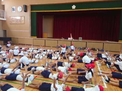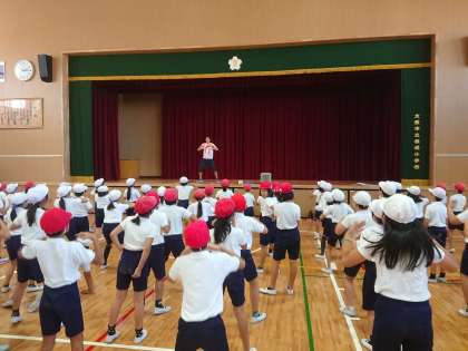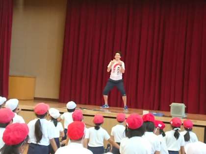 先生が舞台でお手本を見せると、子どもたちから歓声があがりました。