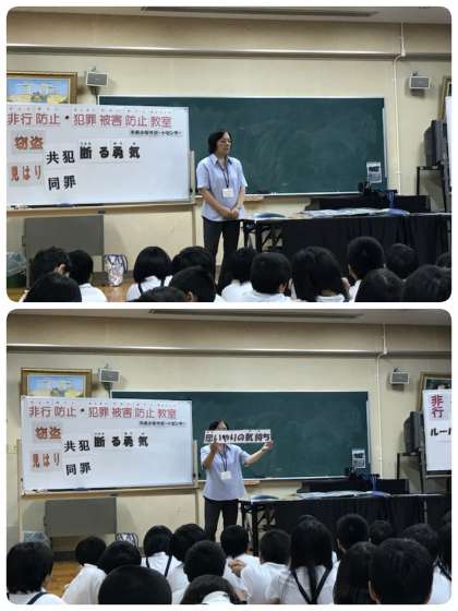 5時間目は、中央少年サポートセンターの方、警察の方に来ていただき、5年生が非行・防止についてのお話を聞きました。