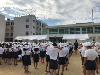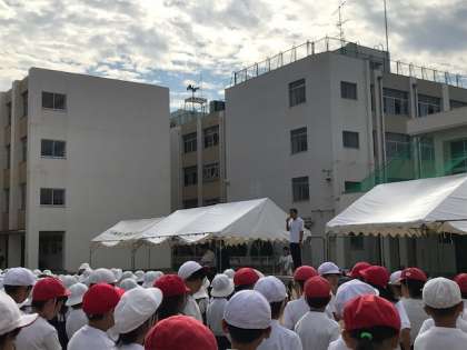 全校朝会では、校長先生から「失敗に恐れず、なにごとにもチャレンジする」というお話がありました。