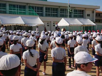 ふだんから、お昼の給食時間に音楽をかけて練習していました。
