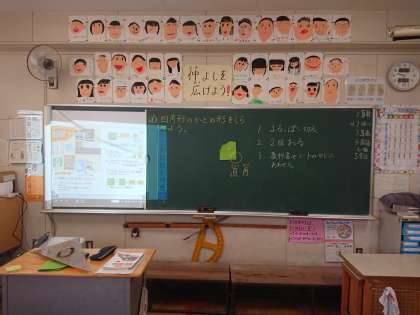 2年生の算数では、身のまわりから「四角形」を探しました。