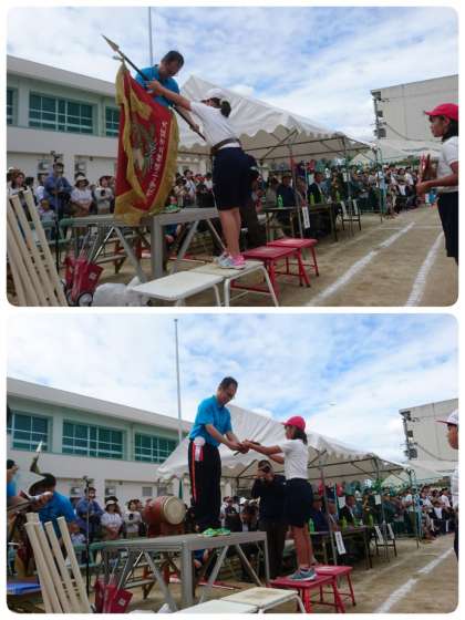 優勝旗返還のあと、校長先生から「感動する」運動会をみんなで作り上げようと、お話がありました。
