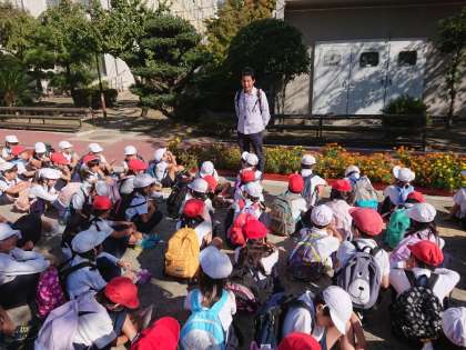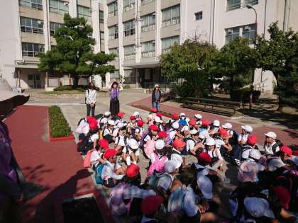9:05 さわやかな秋晴れの中、1年生は大阪城公園へ校外学習に行きます。