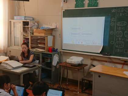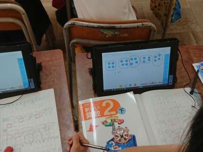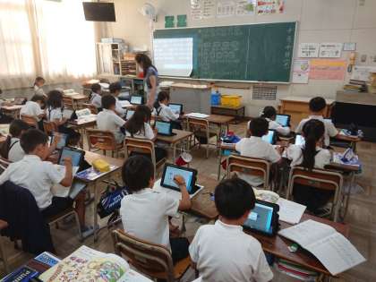 2年生の算数では、のりものにのっている人数を、タブレットを使って調べました。