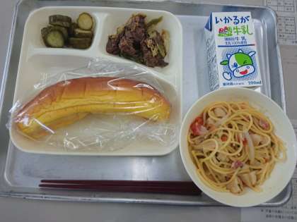 トマトのスープスパゲティに入っているパセリは、かぜを予防するカロテンやビタミンC、おなかの調子を整える食物せんいなどが多く含まれています。