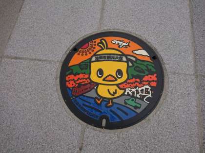 池田市の下水道のフタは、「ひよこちゃん」です。