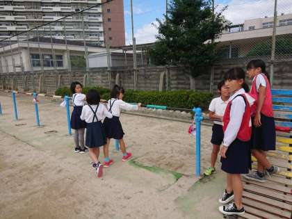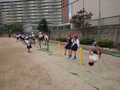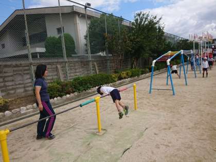 鉄棒の苦手な人は、運動委員がお手伝いしてくれます。