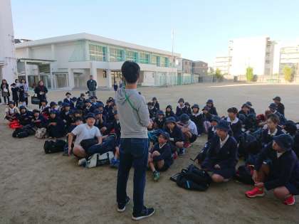 出発式では、校長先生から「絆」についてお話がありました。