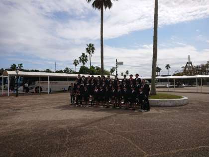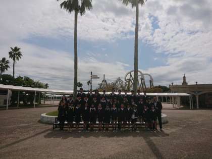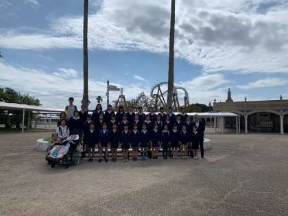 ゲート前で学級写真を撮りました。
