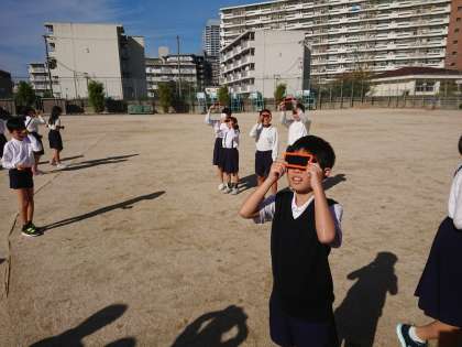しゃ光板で見た太陽は、3枚目の写真のように見えます。