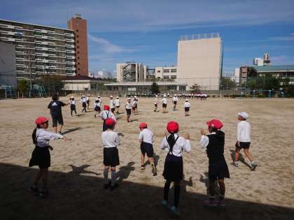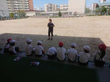 太陽に対してどのように影ができるのか、影ふみをしながら学習しました。