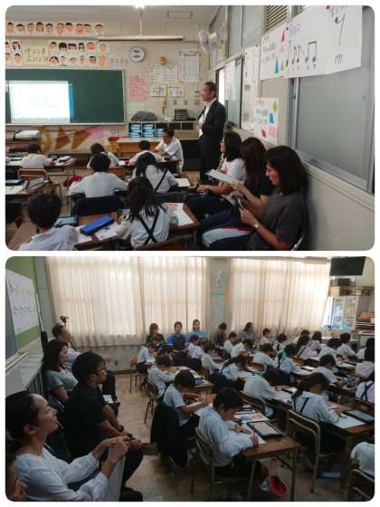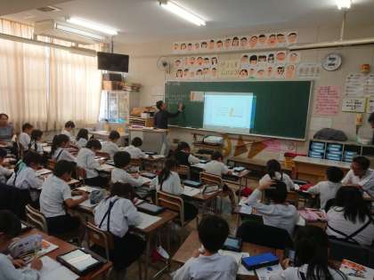 本校の教員だけでなく、校区中学校の校長先生や学力向上指導員の先生にもお越しいただき、授業を見ていただきました。