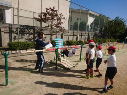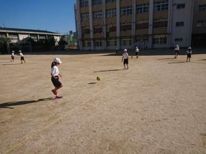 2年生の体育では、逆上がりのテストと、サッカーを行いました。