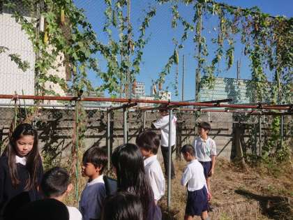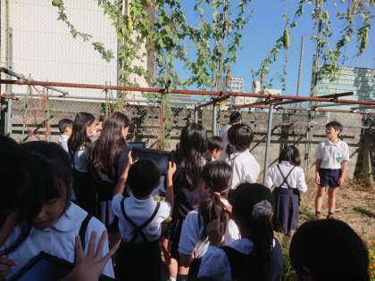 4年生の理科では、学習園で育てたヘチマとヒョウタンを観察しました。