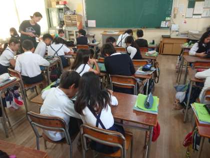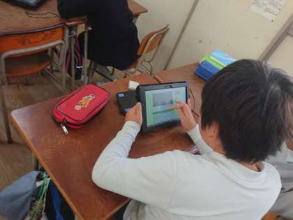 5年生は、タブレットを使った調べ学習の前に、学校のホームページを見ました。