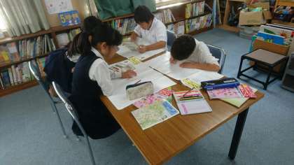 4年生の「わくわくマップ」づくりのようすです。