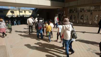 気持ちのいい天気の中、茨田小学校近くの畑に、鶴見区の全小学校のなかよしのお友だちが集まりました。