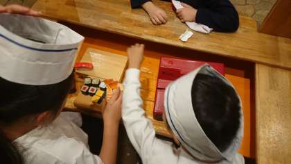 屋台では、すしや、ぱんや、ケーキやがありました。