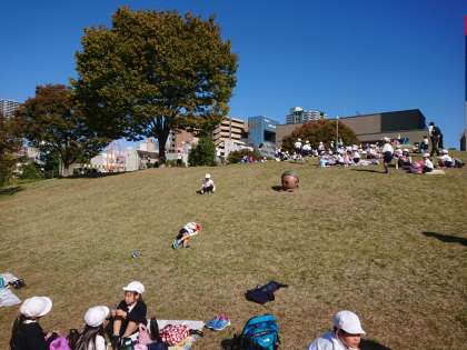 子どもたちは丘を転がったり、遊具で遊んだり、それぞれ楽しんでいました。