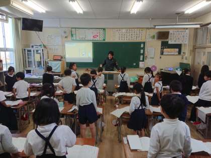 1年生は、学習発表会に向けて、群読と音楽ものがたりの練習をしています。