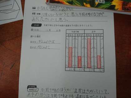 3年生の理科では、日なたと日かげであたたかさはどれくらいの違いがあるかを調べています。