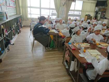 中学校のお兄さん、お姉さんも子どもたちと一緒に給食を食べました。
